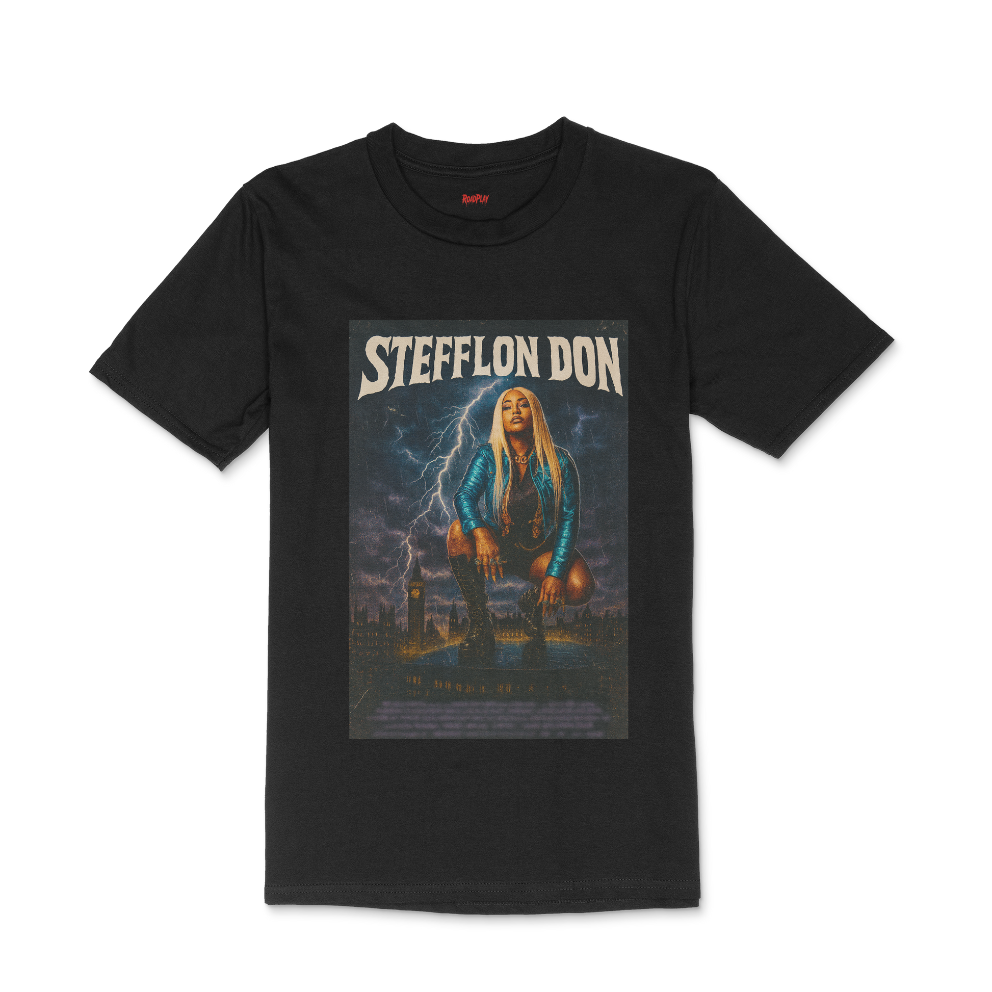 Short sleeve black tee showcasing a Ms Dynamite graphic, reimagined through our #PracticeHours horror drop...