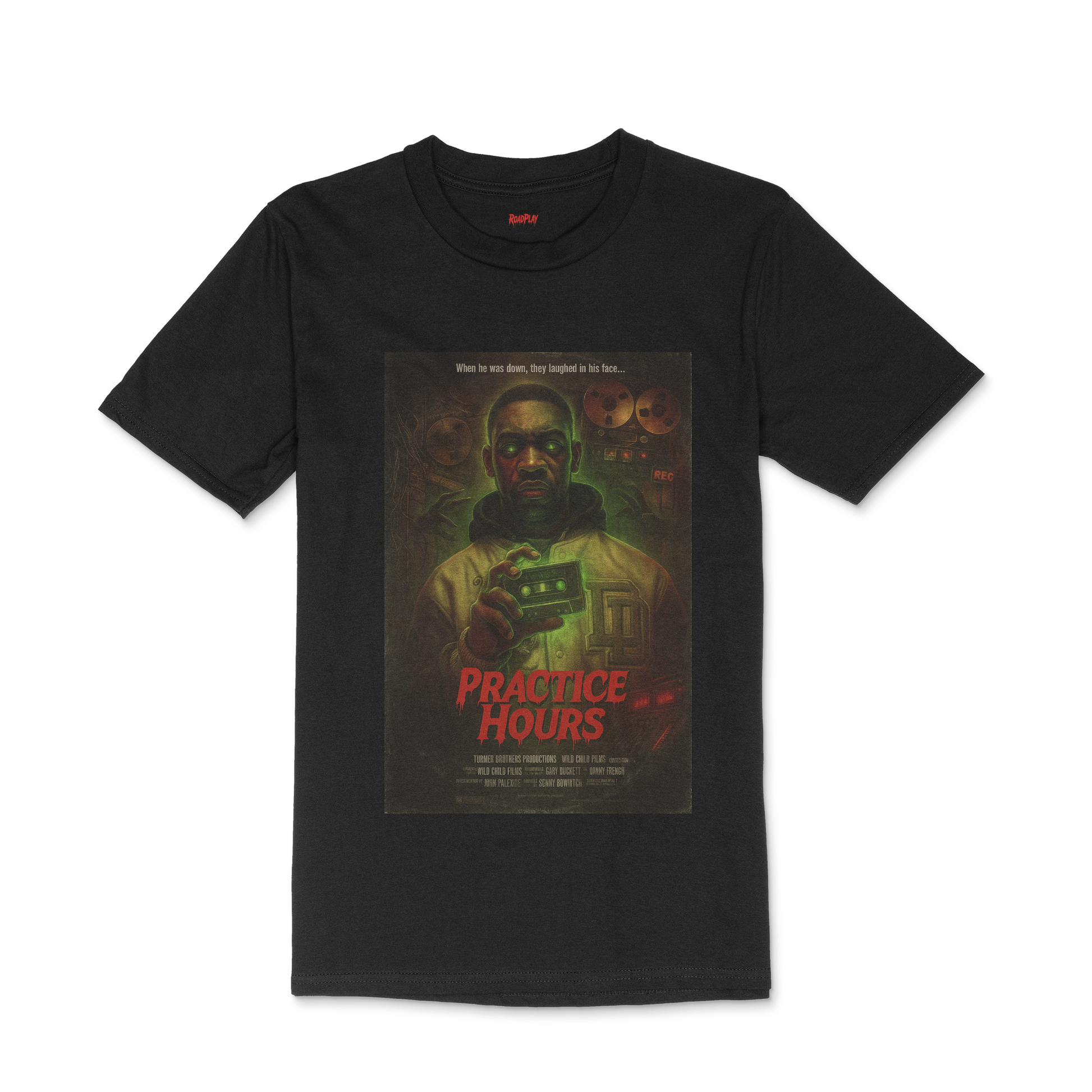 Short sleeve black tee showcasing a Wiley graphic, reimagined through our #PracticeHours horror drop...